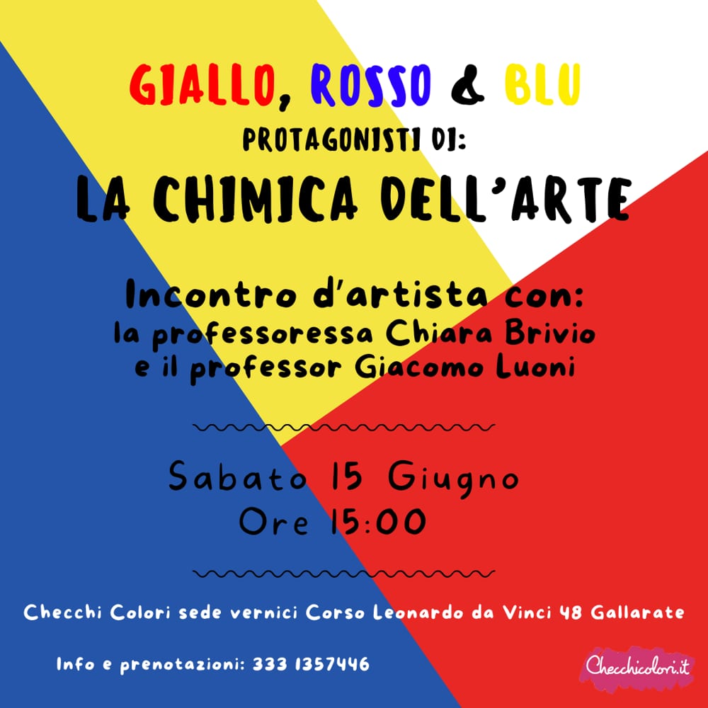 Siamo entusiasti di annunciare un evento imperdibile per tutti gli appassionati di arte e scienza: l’“Incontro d’artista” intitolato “La Chimica dell’Arte”. Questo evento si terrà a Gallarate presso il nostro showroom Checchi Colori, sabato 15 giugno alle ore 15:00. Un pomeriggio unico che vedrà protagonisti i colori primari – giallo, rosso e blu – insieme a due esperti di eccezione: la Prof.ssaChiara Brivio e il Prof. Giacomo Luoni.